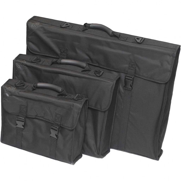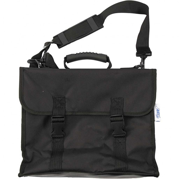 Portfolio van nylon met schouderriem. Houder voor potloden en penselen. Perfect voor het vervoeren van kunstwerken en afbeeldingen.