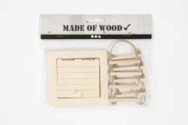 Detailed attic acces door in light wood with ball grip and open/close function. Including rope ladder.