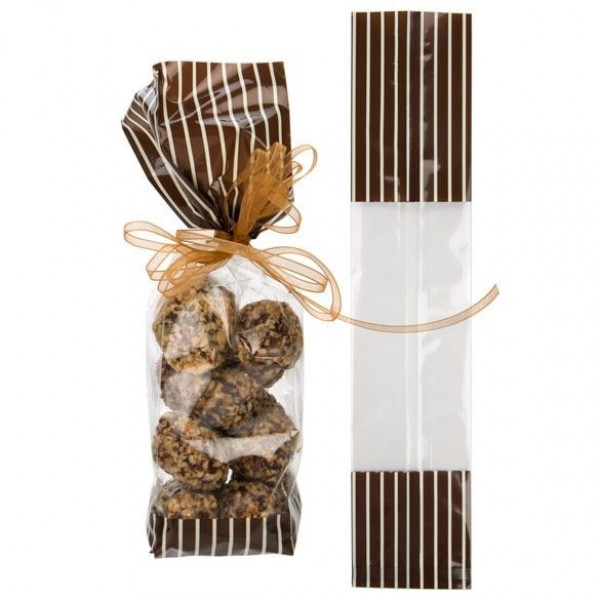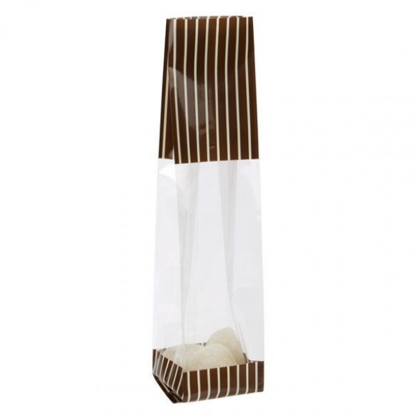 Bedrukte Zakken Bruin met Crême strepen 5,1x4,8x24,1cm met zijvouw (100 stuks) [G1BNC]