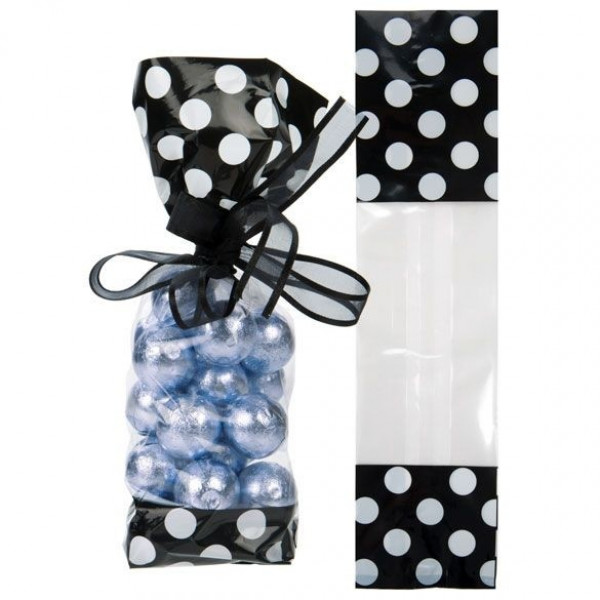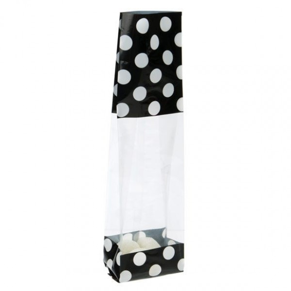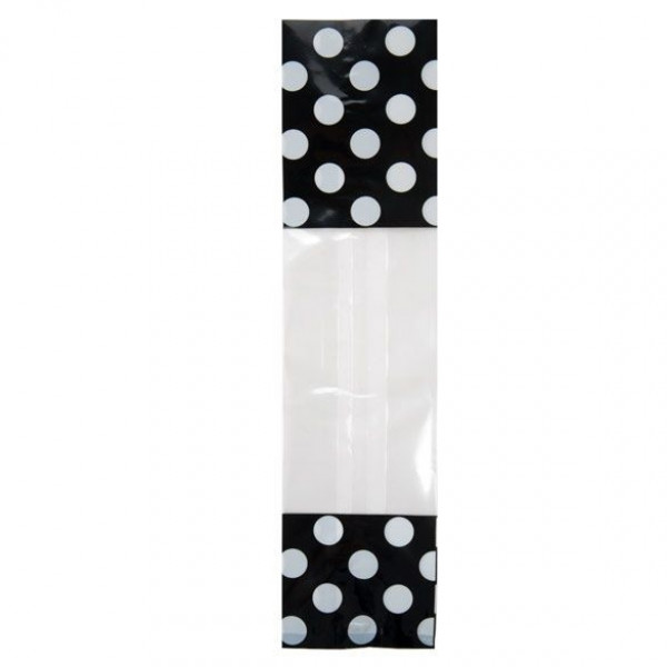 Bedrukte Zakken Zwart met witte stippen 6,7x4,8x27,3cm met zijvouw (100 stuks) [G2BW]