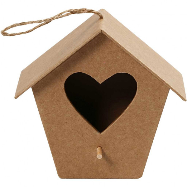 Vogelhuis van bruin papier-maché.