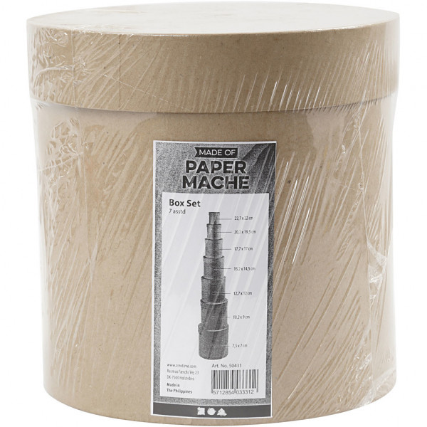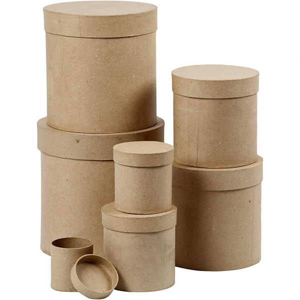 Ronde dozen, rond, d: 7+9+12+14,5+17+19,5+22 cm, h: 7,5+10,2+12,7+15,2+17,7+20,2+22,7 cm, bruin, 7stuks [HOB-50431]