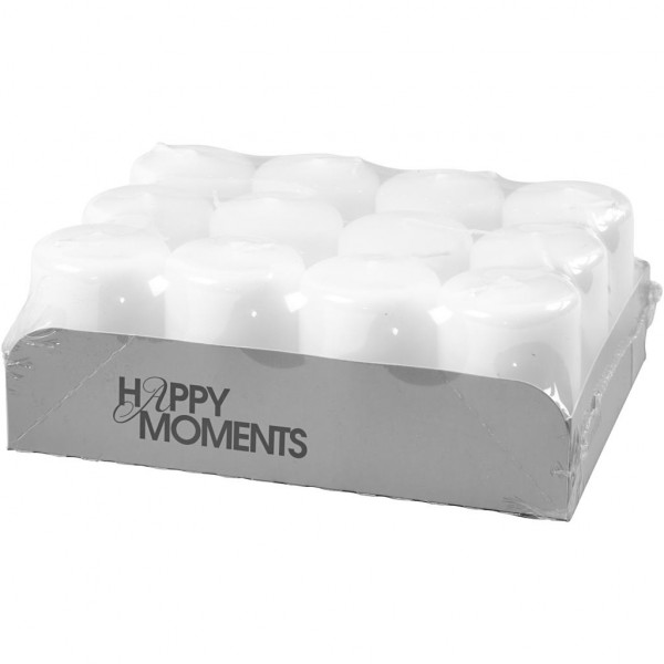 Kaarsen, wit, d: 40 mm, h: 60 mm, 12stuks [HOB-596001]