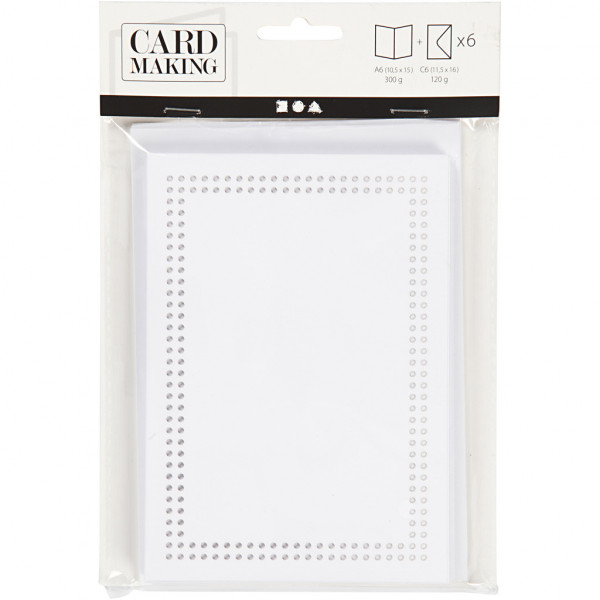 Kaarten om te borduren, afmeting kaart 10,5x15 cm, afmeting envelop 11,5x16 cm, wit, 6stuks [HOB-23901]