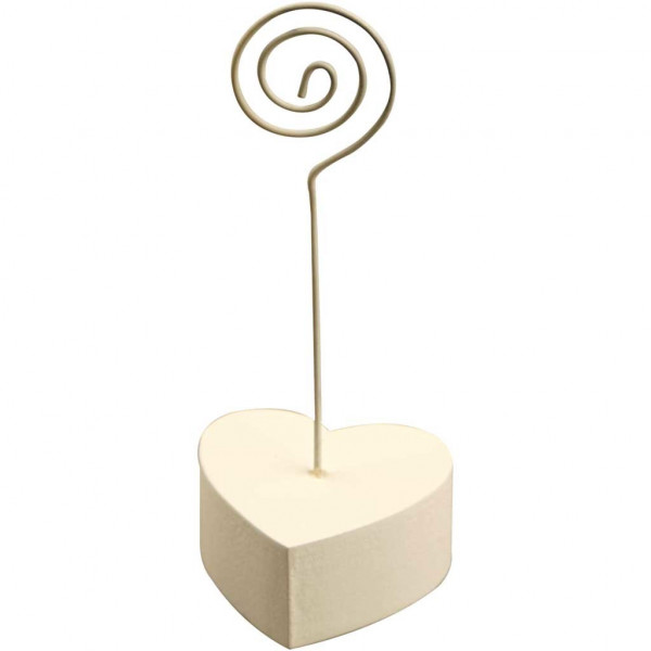 Spiraal van metaal en hartvormige standaard van polyhars.