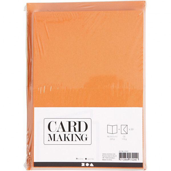 Kaarten & Enveloppen, afmeting kaart 10,5x15 cm, afmeting envelop 11,5x16,5 cm, kleuren assorti, 50sets [HOB-23107]