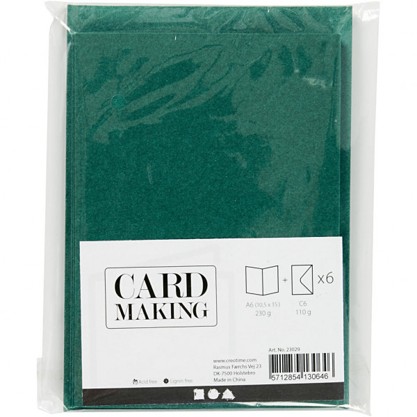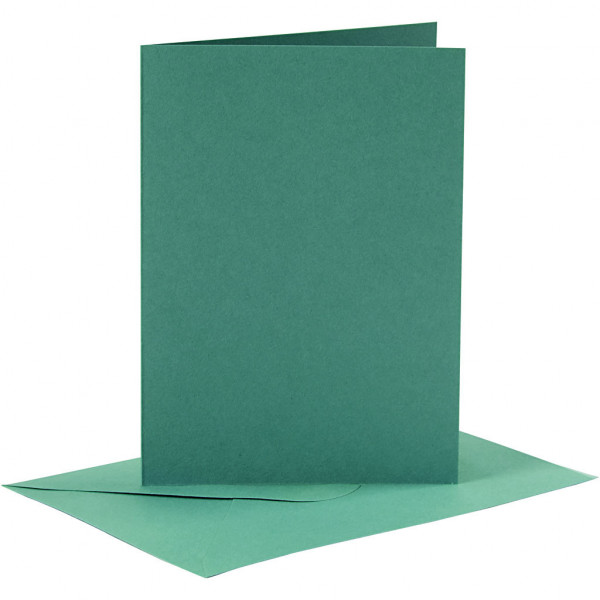 Kaarten en enveloppen, afmeting kaart 10,5x15 cm, afmeting envelop 11,5x16,5 cm, donkergroen, 6sets [HOB-23029]