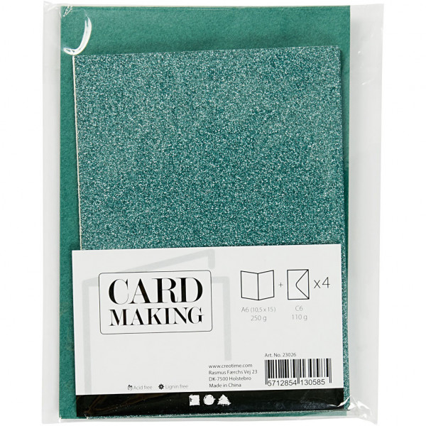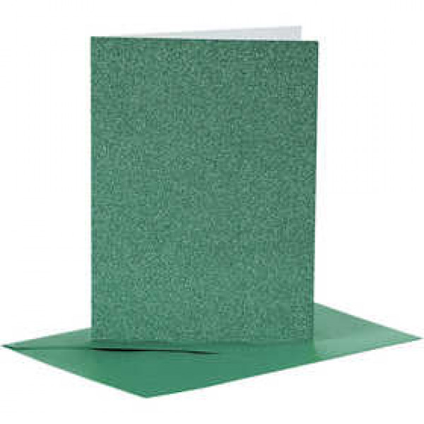 Kaarten en enveloppen, afmeting kaart 10,5x15 cm, afmeting envelop 11,5x16,5 cm, groen, glitter, 4sets [HOB-23026]