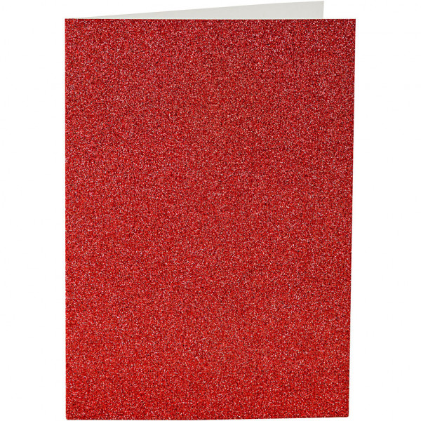 Kaarten en enveloppen, afmeting kaart 10,5x15 cm, afmeting envelop 11,5x16,5 cm, rood, glitter, 4sets [HOB-23025]