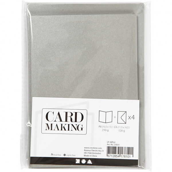 Kaarten en enveloppen, afmeting kaart 10,5x15 cm, afmeting envelop 11,5x16,5 cm, zilver, parelmoer, 4sets [HOB-23031]