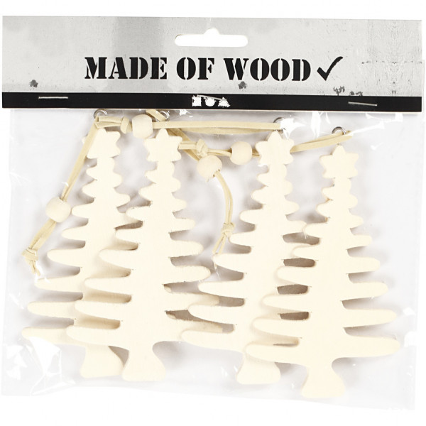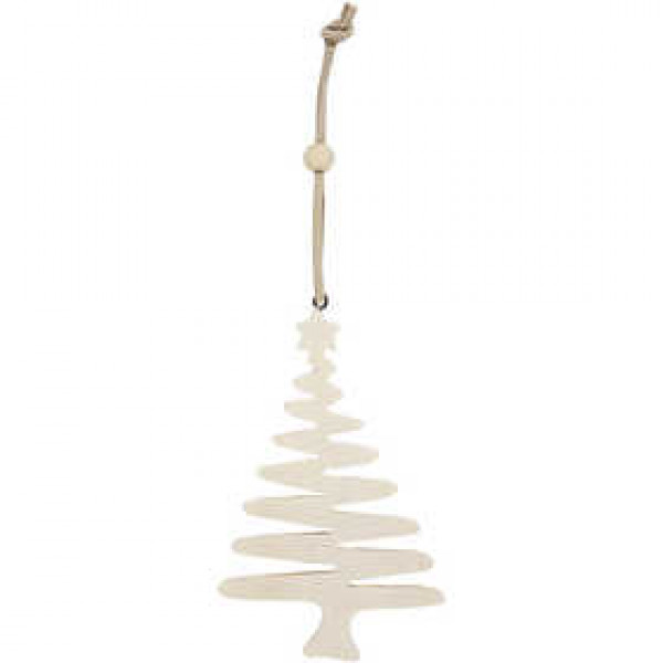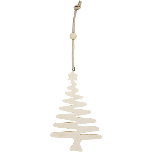 Moderne kerstboom van hout met oog en ophangkoord.