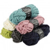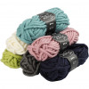 Assortiment garen gemaakt van 100% acryl. 3 steken x 5 rijen = 10 x10 cm op naald 20 mm (armbreien ook mogelijk). Was met de hand op max. 30°C. Inhoud: 6 verschillende kleuren, van elke kleur 1 bol.