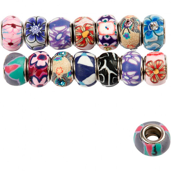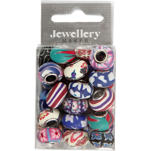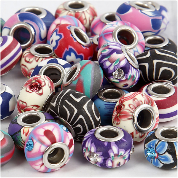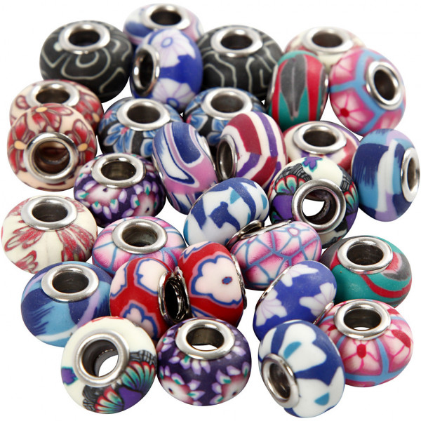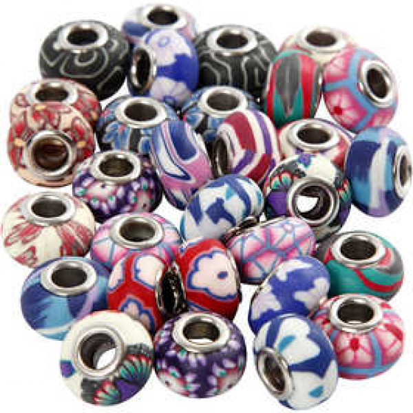 Charm kralen van klei, d: 11-14 mm, gatgrootte 4,5 mm, diverse kleuren, 30div [HOB-69785]