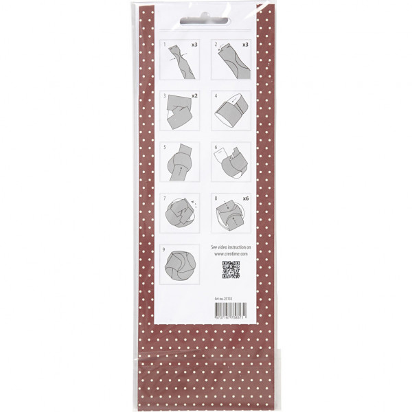 Voorgestanste papieren stroken van Vivi Gade Design voor 9 ballen van papier. Diameter geeft de maat van de bal aan.