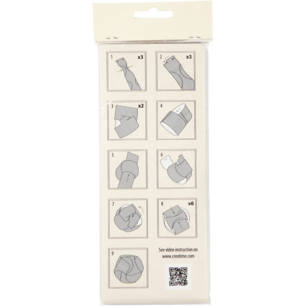 Voorgestanste papieren stroken voor 9 ballen van papier. Diameter geeft de maat van de bal aan.