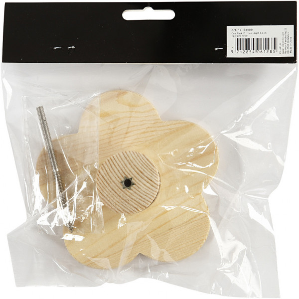 Kapstok, bloem, d: 11 cm, diepte 4,5 cm, grenen, 1stuk [HOB-54409]