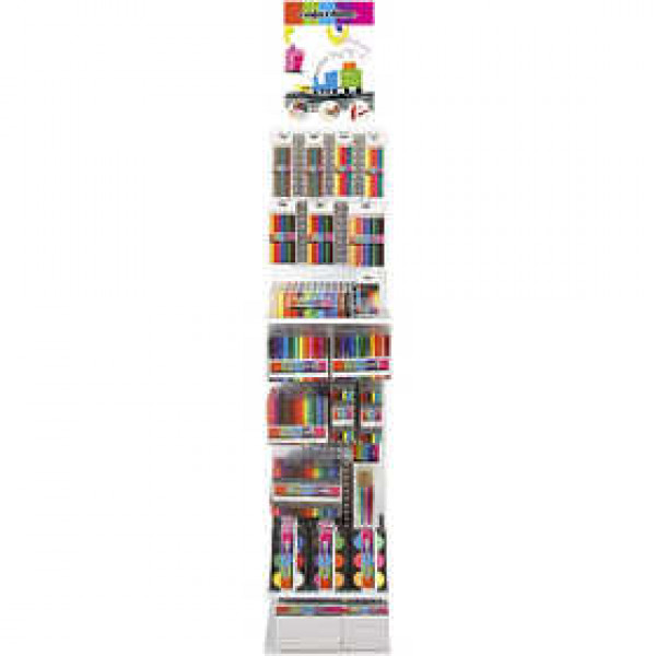 Inhoud: 59 pakken kleurpotloden, 88 pakken stiften, 9 pakken Soft Colour sticks, 8 pakken potloden, 18 pakken waterverf en 20 tekenblokken.