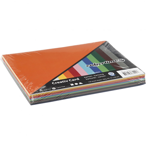 Gekleurd karton, A4 210x297 mm,  180 gr, 120div vellen [HOB-214270]