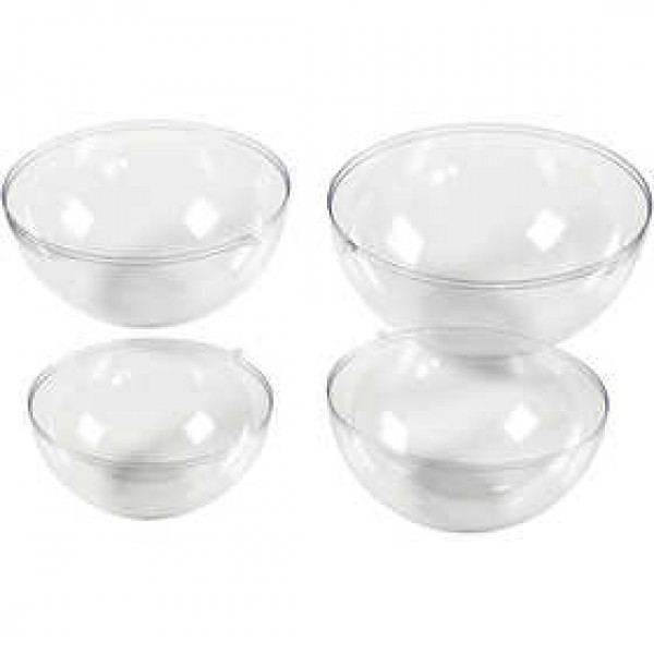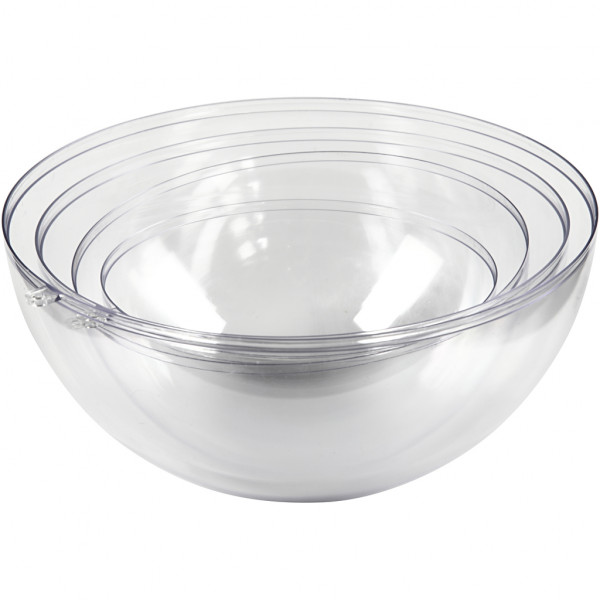 Shapes of transparent, hard plastic for casting semi-spherical bowls in concrete (and other castings that do not expand during curing).