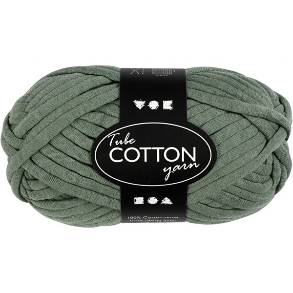 Garen van 100% katoen, gebreid als een nylonvulling , waardoor het garen vol is. Vooral geschikt voor stevig breien of haken van matten, dekens, poefen, tassen, etc. 12 st x 12 st = 10x10cm met haaknaald nr. 5. Handwas.