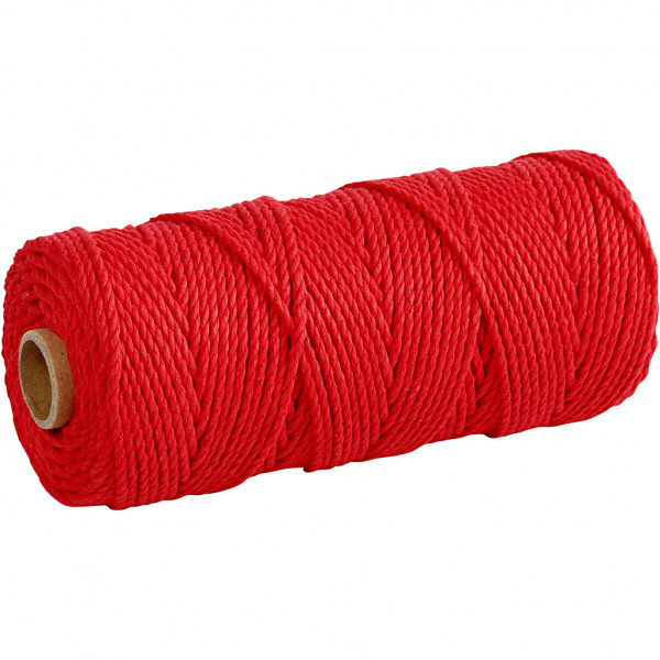 Katoenkoord, l: 100 m, dikte 2 mm, rood, Dikke kwaliteit 12/36, 225gr [HOB-41536]