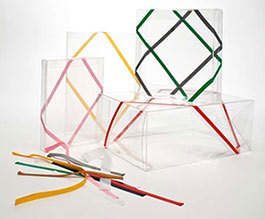 Vinyl Versierelastiek is een 0.63 cm brede band die gebruikt kan worden om onze heldere dozen mee te decoreren.