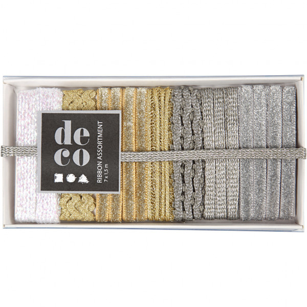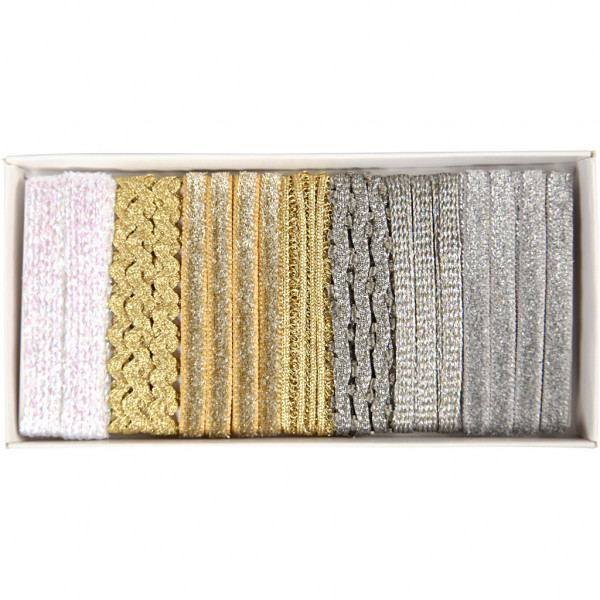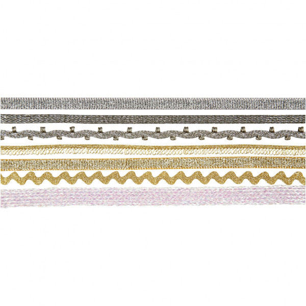Lint collectie, b: 5-10 mm, wit, goud, zilver, 7x1,5m [HOB-514240]