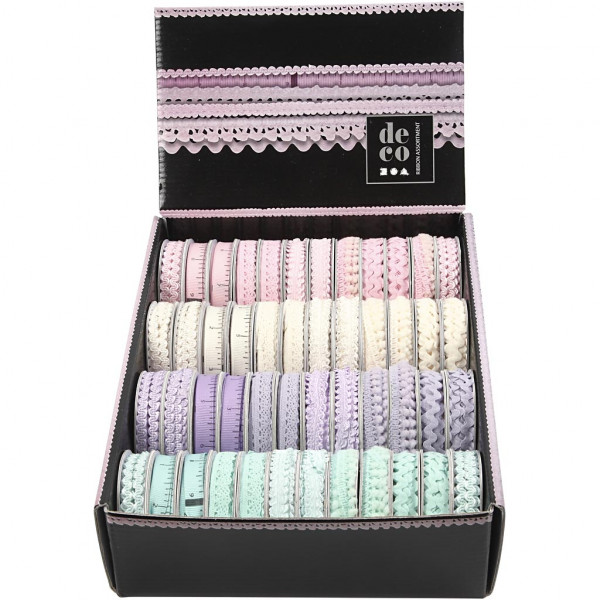 Serie decoratief lint in een displaydoos.