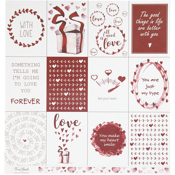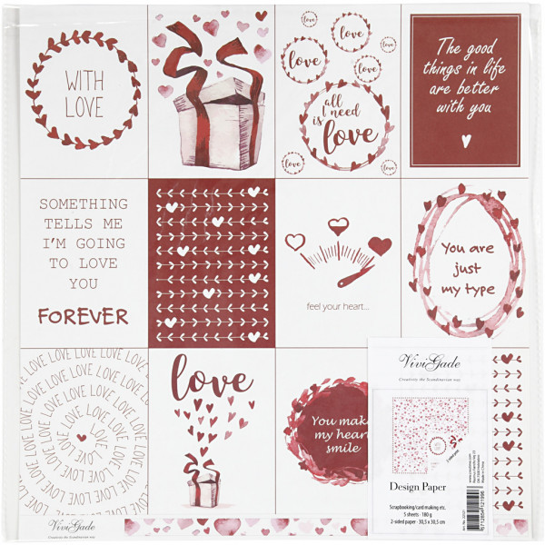 Design papier, vel 30,5x30,5 cm, 180 gr, , love & harten, 5vellen [HOB-22521]