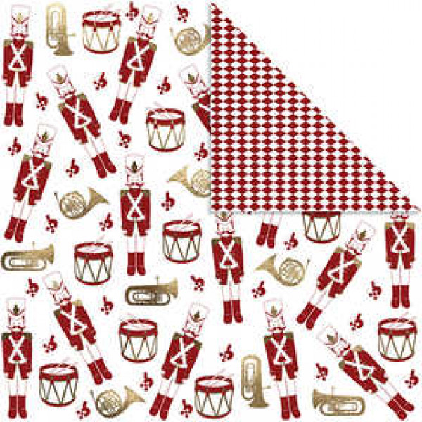 Design papier, vel 30,5x30,5 cm,  180 gr, wit, goud, rood, notenkraker, 3vellen [HOB-22511]