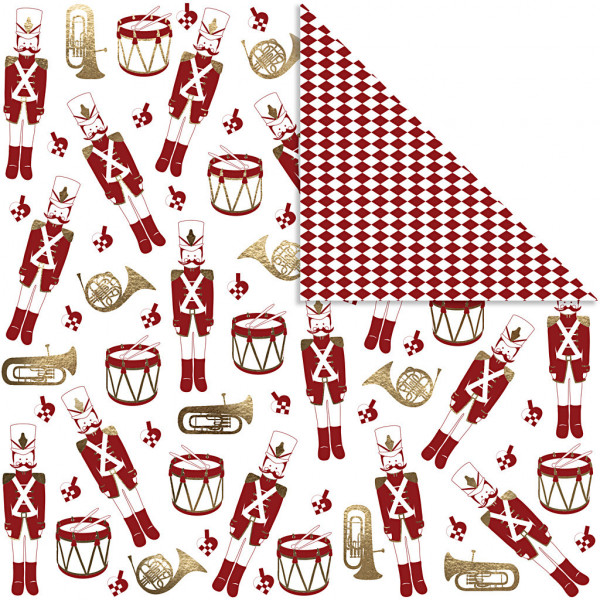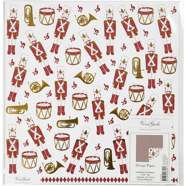 Design papier, vel 30,5x30,5 cm, 180 gr, wit, goud, rood, notenkraker, 3vellen [HOB-22511]
