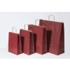 Give your customer a colored shopping bag, made of a strong 100 gram recyclebaar Kraft Papier. We offer these shopping bags in a big range of great colors and various sizes. They are very easy to use and easy to carry because of the twisted paper cord handles. These bags are supplied folded flat and are ideal for Magazines, clothing and other light weight products. Are you interested in your own logo or image on these bags? We customize them starting at 5,000 pcs. Ask our Customer Service for a keen quotation.
