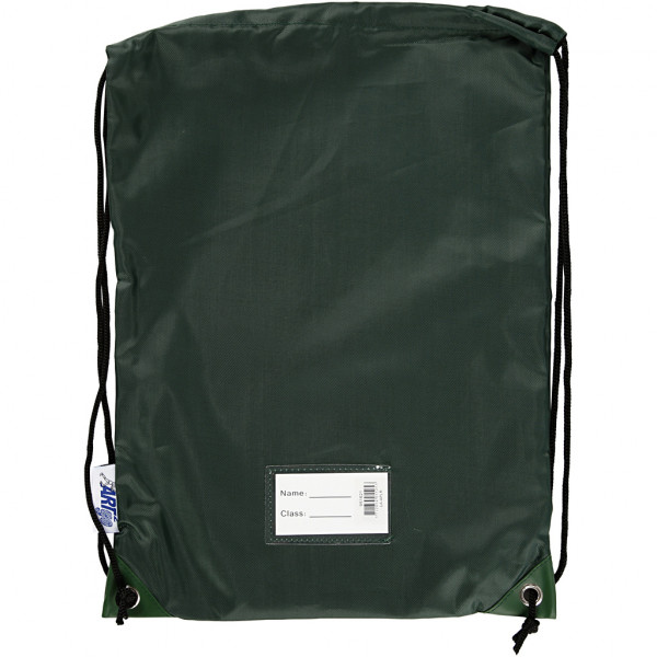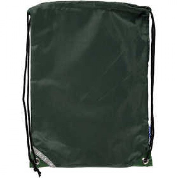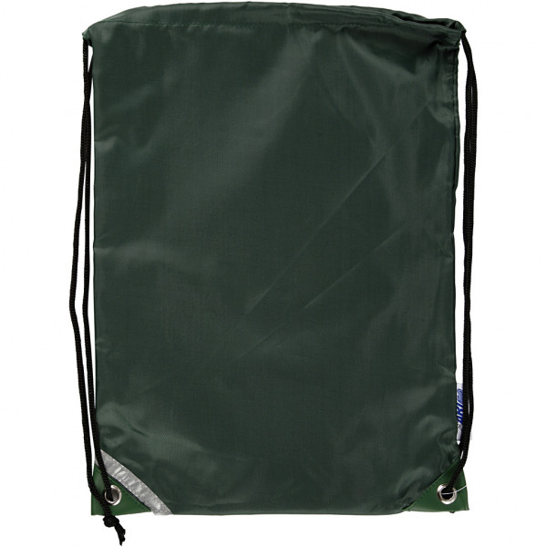 Rugzak met treksluiting die gebruikt kunnen worden als schouderbanden. De rugzak is waterbestendig en heeft versterkte hoeken, 3M reflecterend tape en een transparant vak voor een naamkaart.