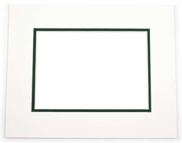 Dubbele Passepartout, Wit/Donker Groen 6,7x11,8cm uitsnede - Buitenmaat 40.6x50.8cm (10 Stuks) [MD20210]