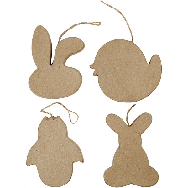 Paas decoraties, konijnenkop, kuiken, kuiken in ei en konijn, h: 10 cm, 4stuks [HOB-267913]