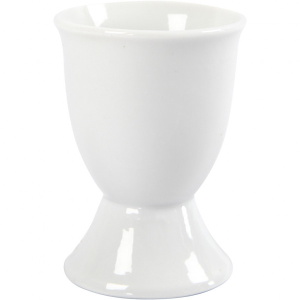 Eierdop op voet van wit porselein.
