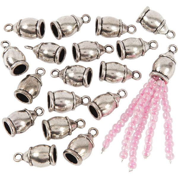 Eindkap, afm 11x20 mm, gatgrootte 6 mm, antiek zilver, 40stuks [HOB-63733]