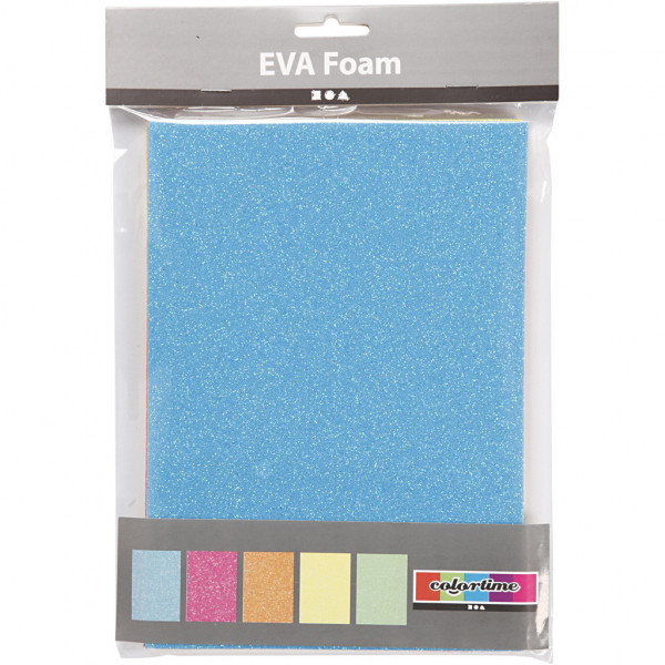 EVA foam vellen, A5 15x21 cm, dikte 2 mm, kleuren assorti, glitter- neon, 5vellen [HOB-769013]
