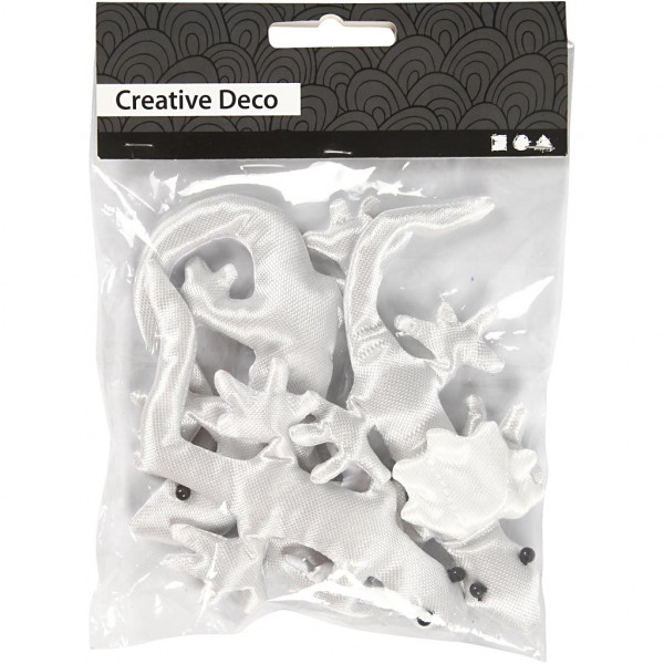 Set stoffen figuren gemaakt van polyester en gevuld met zand. Kan gedecoreerd worden met Foam Clay, Silk Clay of textielstiften.