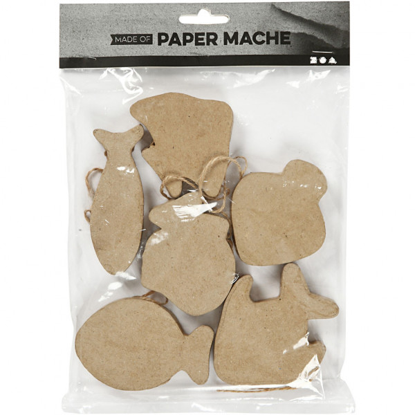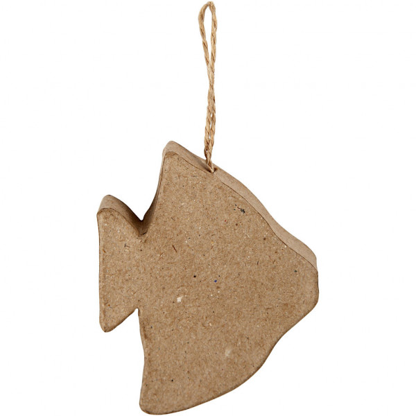 Handgemaakte vissen van papier-maché met ophangkoord.