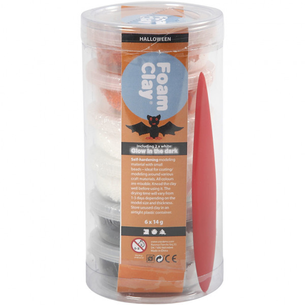 Foam Clay®, glow in the dark, oranje, zwart, Halloween, 6x14gr [HOB-78843]