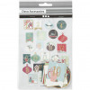 Kleine stickers met motieven in diverse groottes gemaakt van karton en bedrukt in kleur en vele ook met goudkleurig folie. Kan gebruikt worden als decoratie op kaarten en voor scrapbooking.
