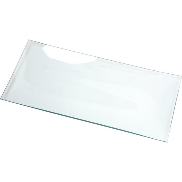 Langwerpige glazen schaal van transparant glas met ronde kanten.