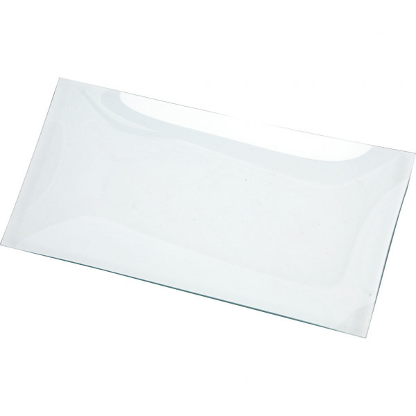 Langwerpige schaal van transparant glas met afgeronde randen.