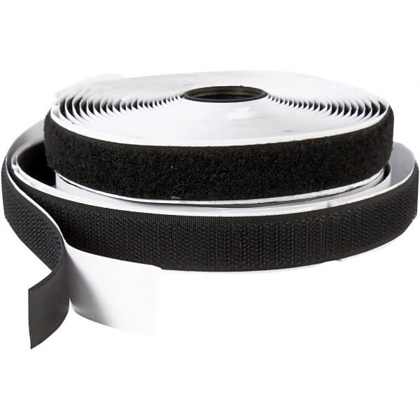 Klitteband haak en lussluiting, b: 20 mm, zwart, Zelfklevend, 5m [HOB-41021]