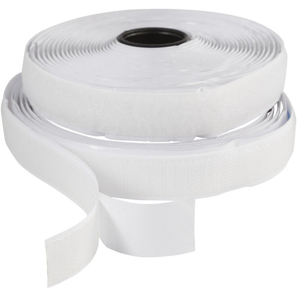 Klitteband haak en lussluiting, b: 20 mm, wit, zelfklevend, 5m [HOB-41020]