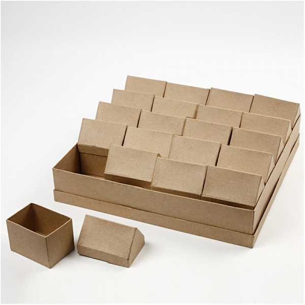 Handgemaakte doos van papier-mâché in vorm van een huis.