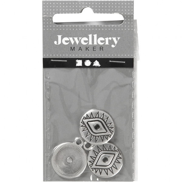 Sieraden hanger, d: 16 mm, gatgrootte 1,8 mm, verzilverd, 3stuks [HOB-61176]