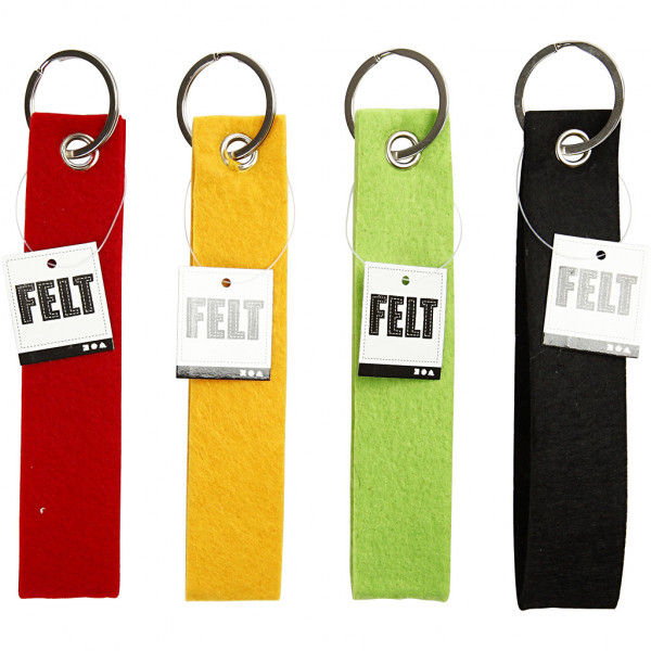 Sleutelhanger, afm 3x15 cm, dikte 3 mm, groen, geel, rood, zwart, 4stuks [HOB-45086]