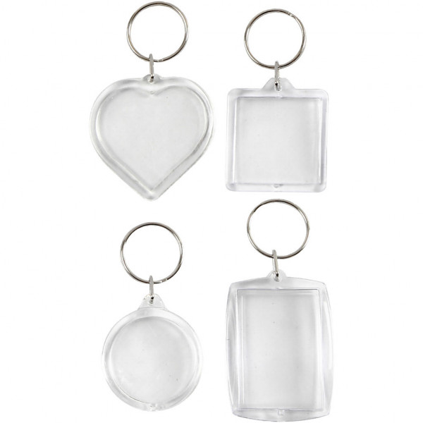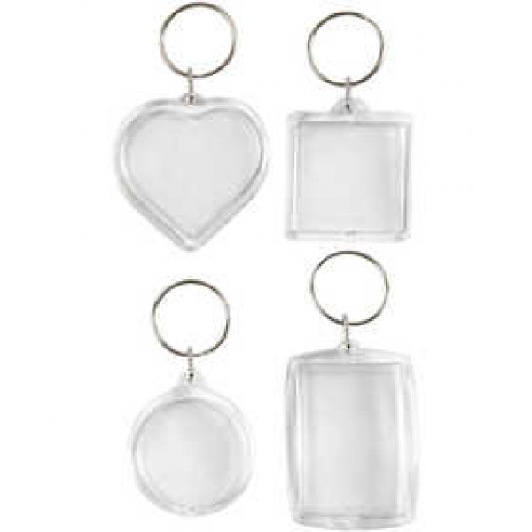 Sleutelhangers van transparant acryl - met sleuf om tekeningen, foto's etc erin te doen.